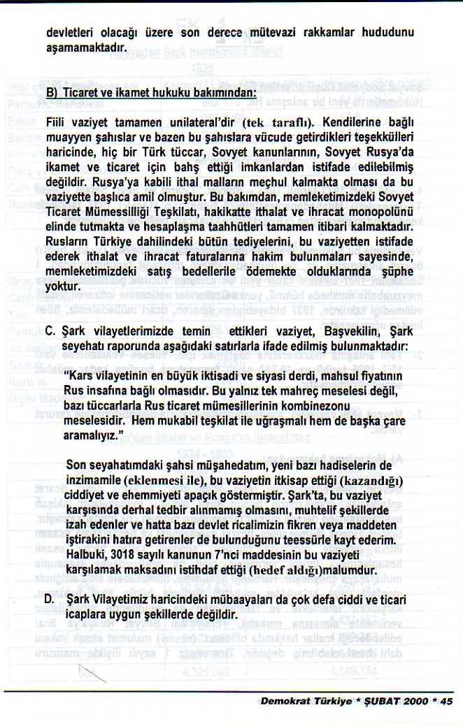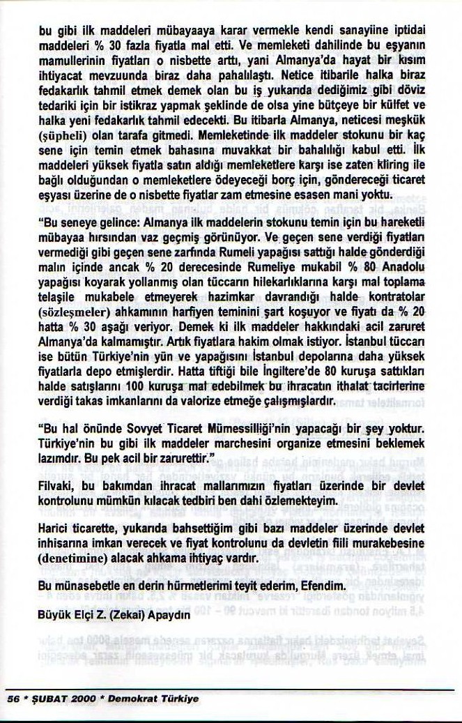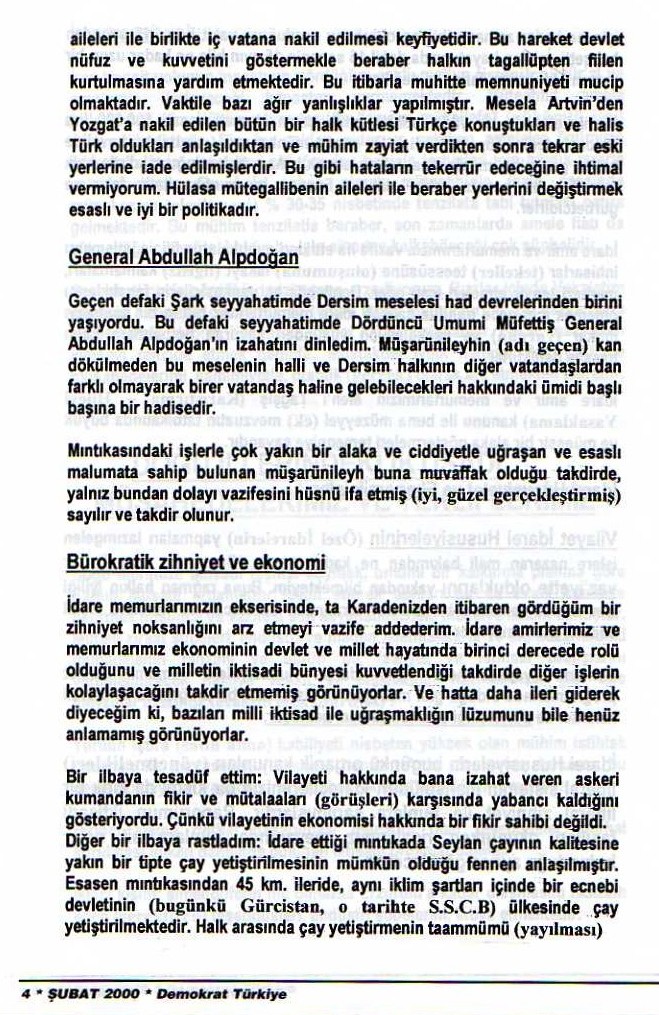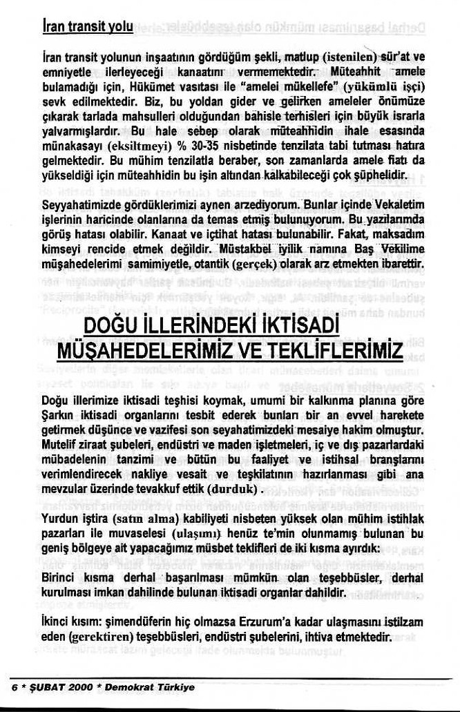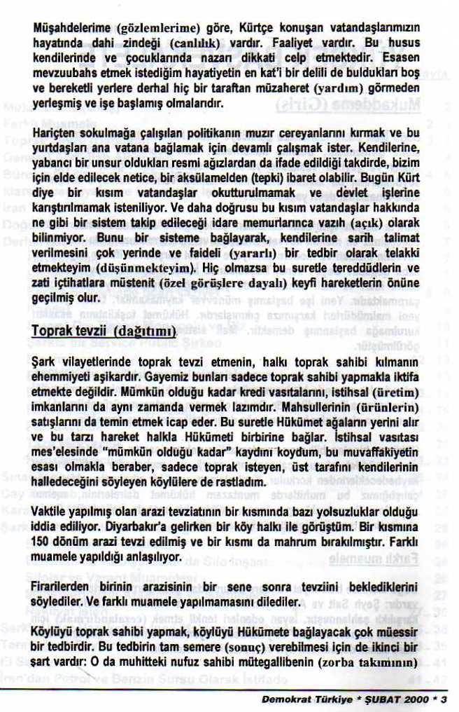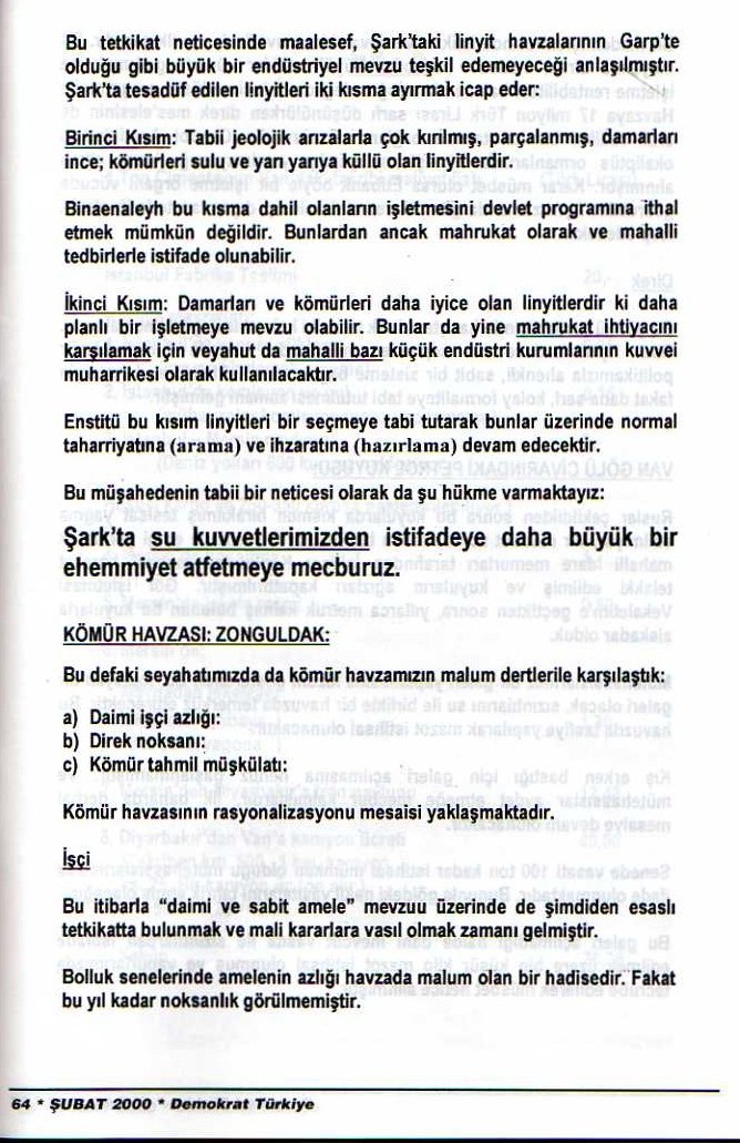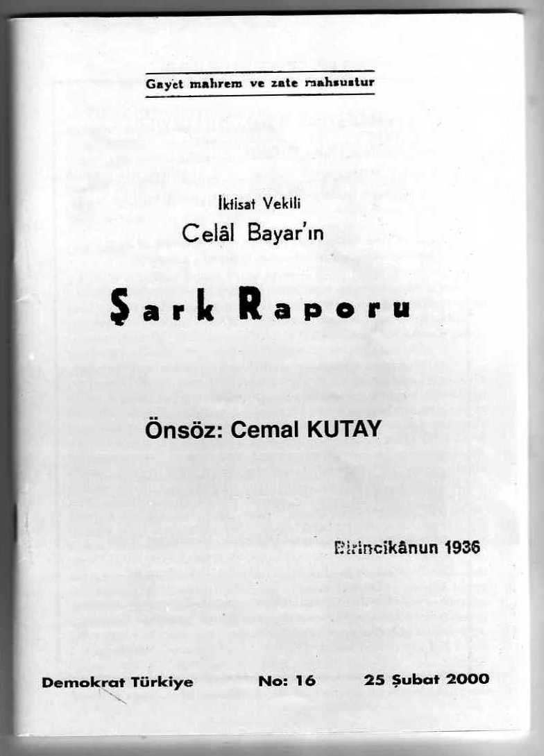 ŞARK RAPORU (*) “Türkiye Cumhuriyeti İktisat Vekili Celâl BAYAR” (Gayet Mahrem ve Zata (Mustafa Kemal ATATÜRK’e) Mahsustur) Yıl: 1936-Önsöz: Cemal Kutay – YAYIN: Demokrat Türkiye, Gazeteci, Araştırmacı – Yazar: Mehmet Arif Demirer, No: 16 – 25 Şubat 2000