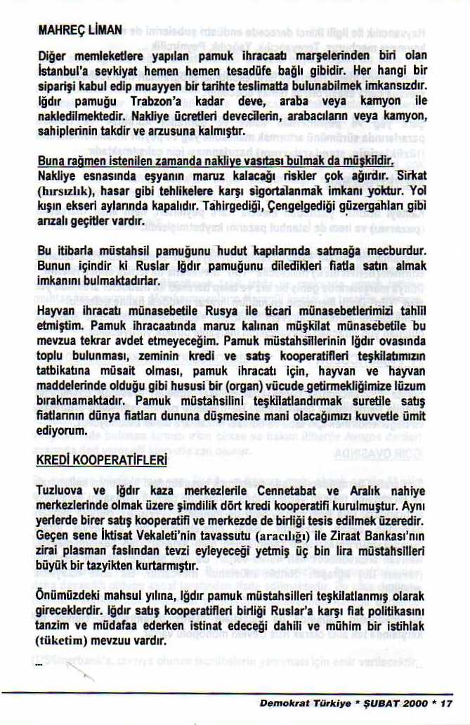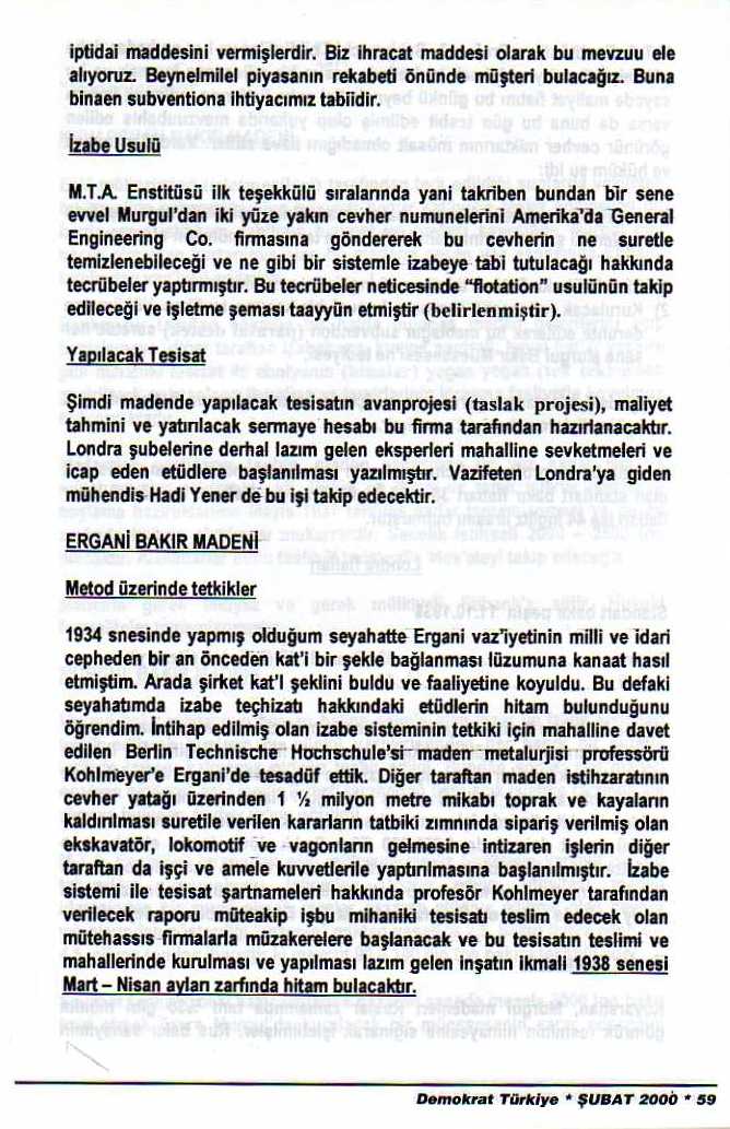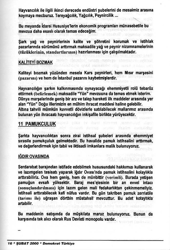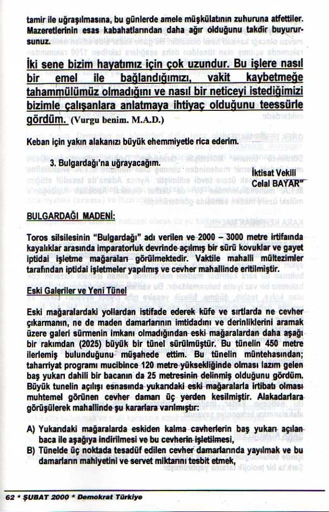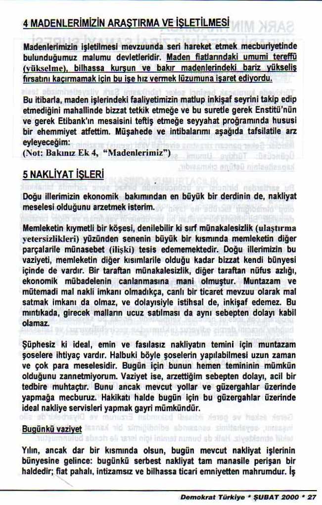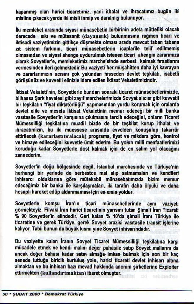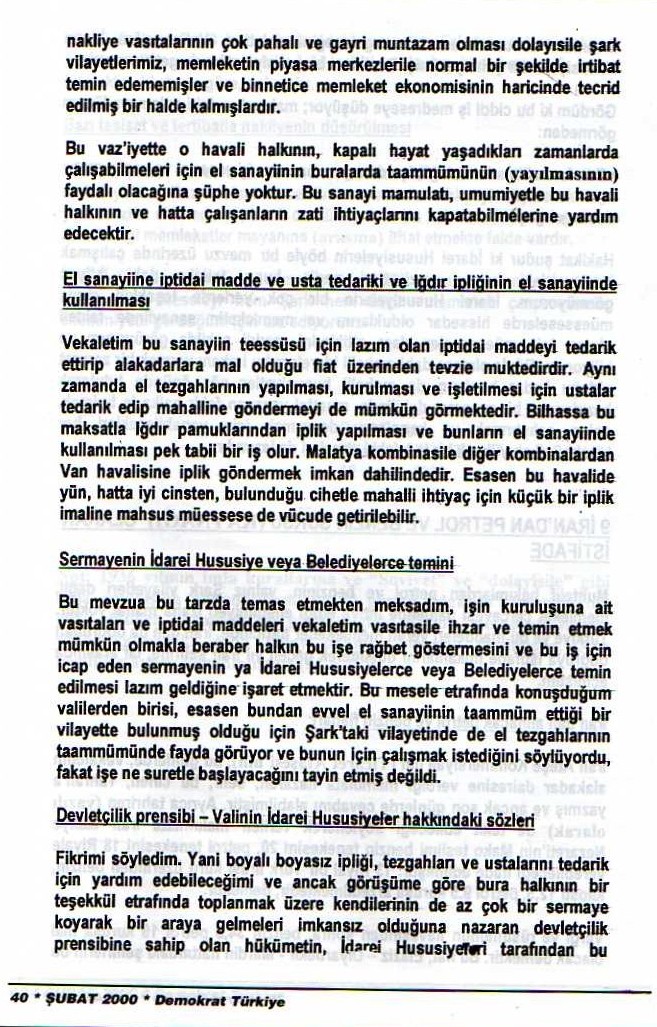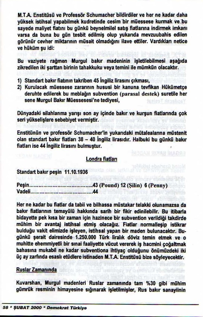 ŞARK RAPORU (*) “Türkiye Cumhuriyeti İktisat Vekili Celâl BAYAR” (Gayet Mahrem ve Zata (Mustafa Kemal ATATÜRK’e) Mahsustur) Yıl: 1936-Önsöz: Cemal Kutay – YAYIN: Demokrat Türkiye, Gazeteci, Araştırmacı – Yazar: Mehmet Arif Demirer, No: 16 – 25 Şubat 2000